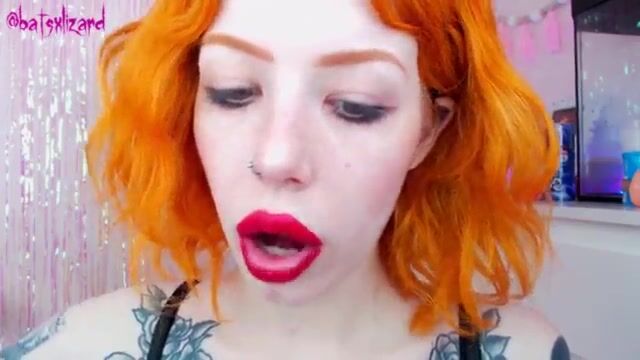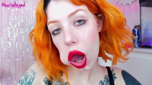 Жесткий отсос рыжей шлюхи с длинным языком и широким ртом на огромном дилдо