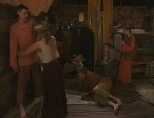 Грубые парни ебут деревенских шлюх в их волосатые киски и анальные дырки в избе