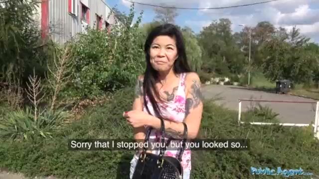 Хардкорный трах на улице с татуированной азиаткой за бабки