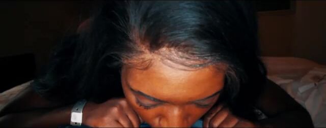 Чернокожая шлюшка глубоко заглатывает член своего темнокожего богатыря