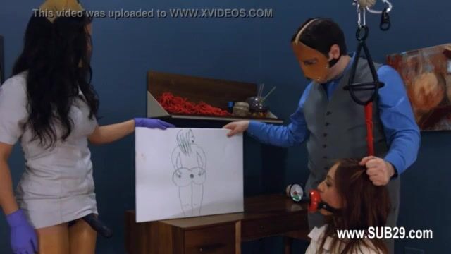Хирург и медсестра насилуют татуированную шлюху и трахают ее в жопу пальцем