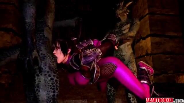 Жесткий мультфильм с монстрами, трахающими земных шлюх огромными хуями