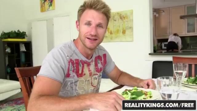 Поимела парня за обедом и получила жесткий трах в киску