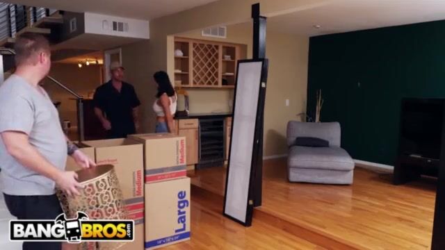 Шаловливая хозяюшка с огромными титьками ебется с грузчиком за спиной папашки