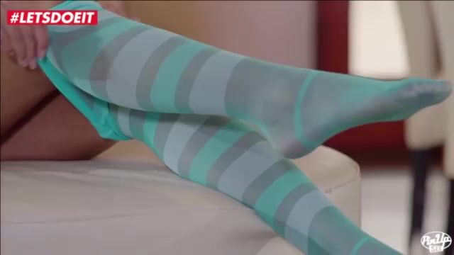 Шлюховатая Алексис Брилл в ярких колготках трахается с женатым друганом на кровати