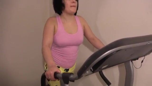 Толстушка мастурбирует свою пизду фаллоимитатором во время тренировки