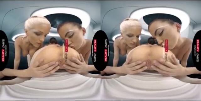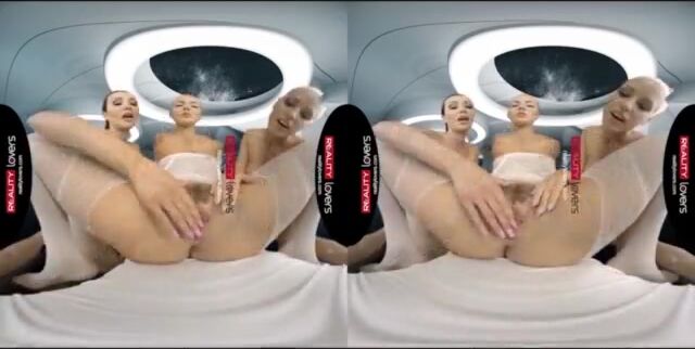Блядь-капитан трахает троих сучек в бодистокингах на своем космическом корабле