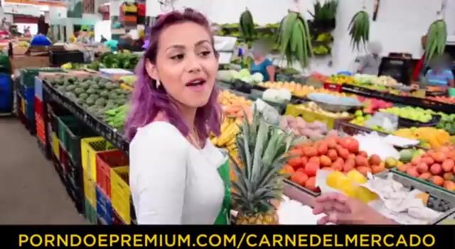Жаркая латинка с фиолетовыми волосами отсосала на рынке и трахнулась с молодым хуесосом