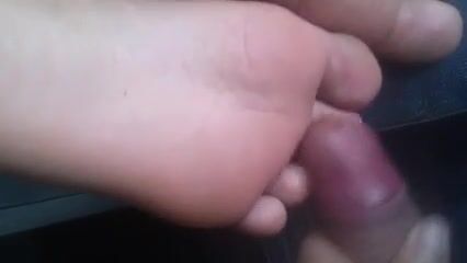 Хуесос-фетишист дрочит свой член и теребит головкой об ноги шлюхи