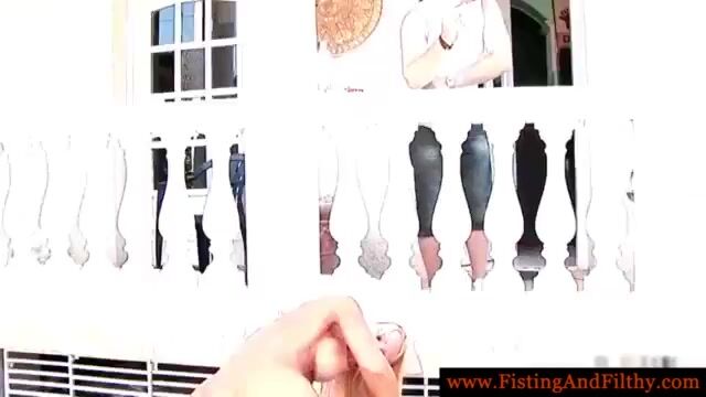 Горячая блондинка на кастинге: фистинг и дилдо на шезлонге!