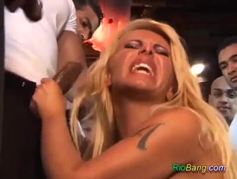 В этом порно видео тебя ждет жаркий групповой перепихон с развратной бабенкой, которая обожает большие члены и жесткий секс. Она не стесняется своих огромных силиконовых сисек и готова отдаться каждому из парней, которые окружают ее. Шлюха смело берет в рот и трахается во все щели, не забывая материться и орать от удовольствия. Ее киска и анал становятся все более разработанными от мощных толчков членов, а она сама просит еще и еще. Наслаждайся этим жестким поревом и не забывай материться вместе с ней!