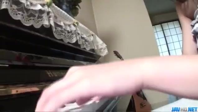 Азиатская шлюха трахает себя бутылкой и сосет соседский хуй на полу