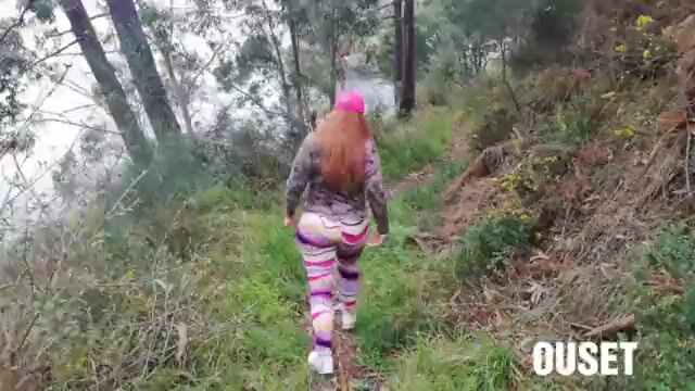 Хуесоска в пиздатых леггинсах долбится в лесу