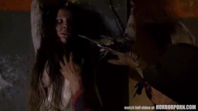 Безжалостный Фредди Крюгер трахает связанных шлюх в подвале и жестко имеет одну на столе