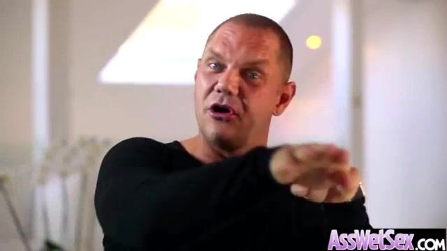 Хуесос играет с задницей и киской шлюшки и дрючит её кривым пенисом в рот