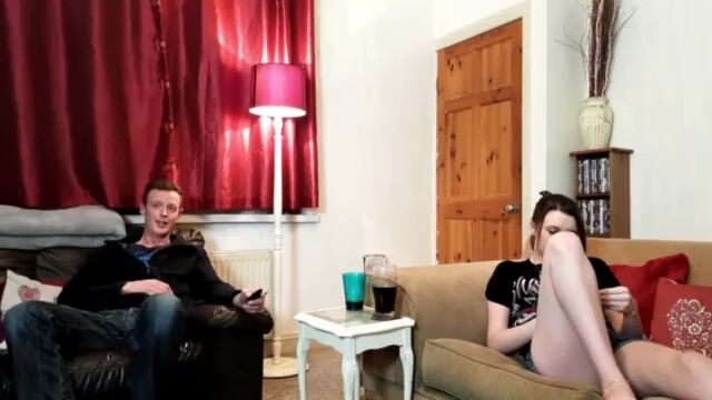 Братишка трахает сестренку с пирсингом в языке на кожаном кресле и насилует ее на полу