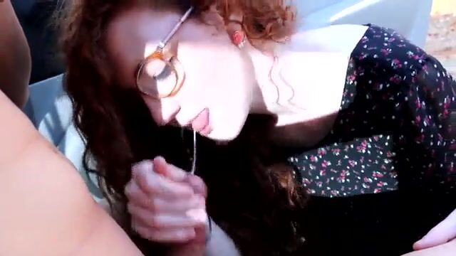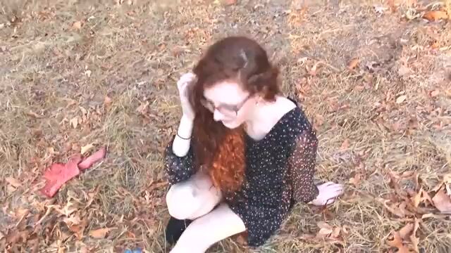 Жгучая красотка с рыжими волосами грубо ебется на свежем воздухе перед объективом
